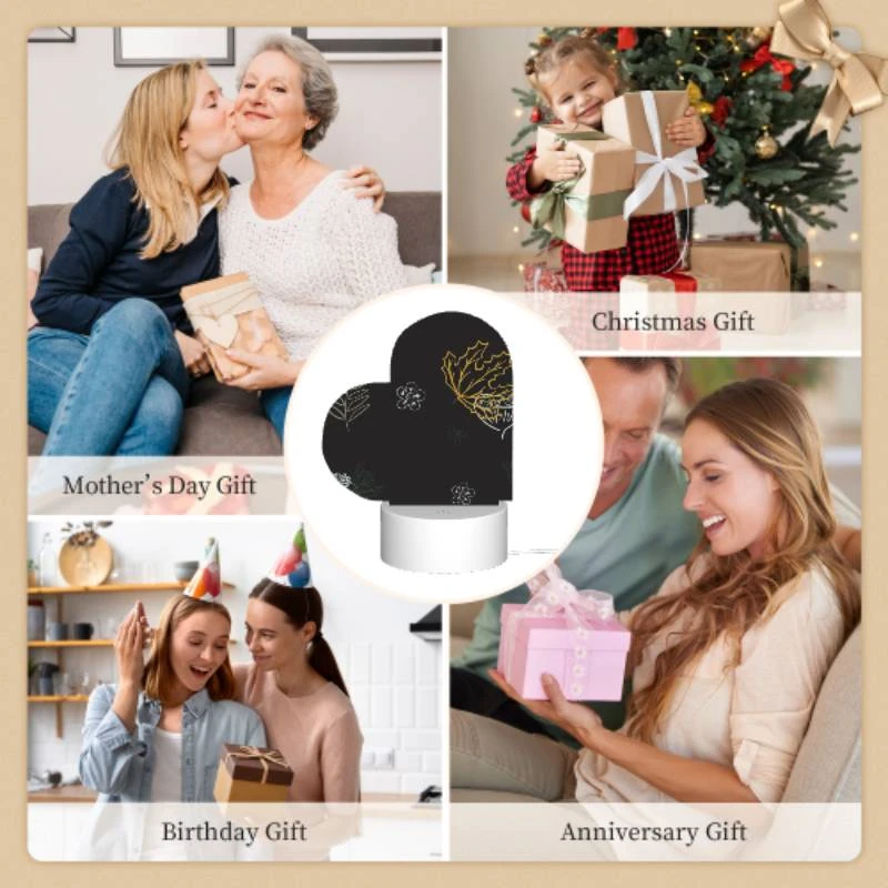 [Product Performance] The night light is composed of an acrylic light board and a plastic base. The night light has 3 light options (white light, warm light, warm white light). Touch to switch the light mode, which is soft and not dazzling, harmless to the eyes, and accompanies you into sweet dreams every night, creating a comfortable sleeping environment.