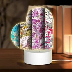 Be the first to review “Love Acrylic Night Light, Three Colorful Designs Are Displayed On A Row Of Paper.” Cancel reply