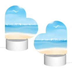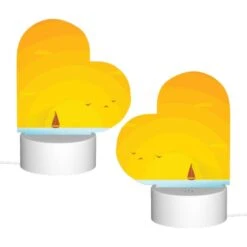 Love Acrylic Night Light, A Boat Is Sailing On The Water With A Beautiful Sunset In The Background.