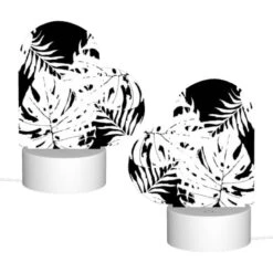 Love Acrylic Night Light, A Black And White Photo Of A Leafy Plant.