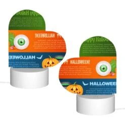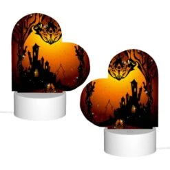 Love Acrylic Night Light, A Colorful Poster With Halloween Decorations And A Witch On A Broom.