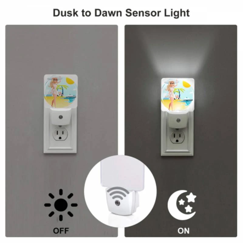 This LED sensor night light is lit by brightness. The photoconductive resistor inside the night light detects external light. When the external environment becomes dark, the photoconductive resistor controls the opening circuit, and then the night light starts to light up. When the external environment is bright to the critical point of the photoconductive resistor, the circuit is automatically cut off, and then the night light goes out to save power.