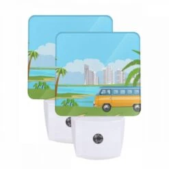 Night Light Set Of 2, A Colorful Cartoon Van Is Driving On A Road Near A Body Of Water. -Nuas Diy Shop 621af3cfeb2298890748ec2f4eed696f2b022462