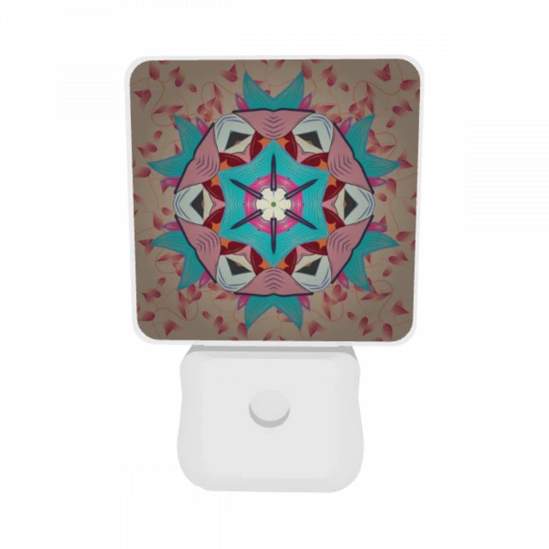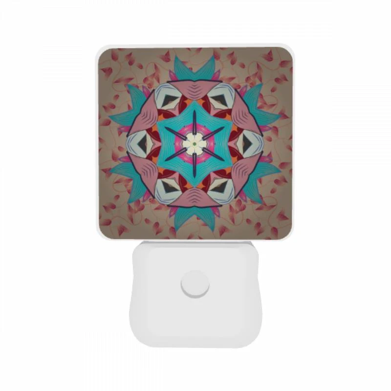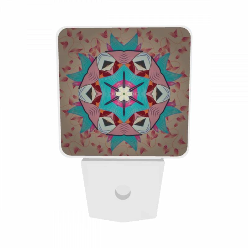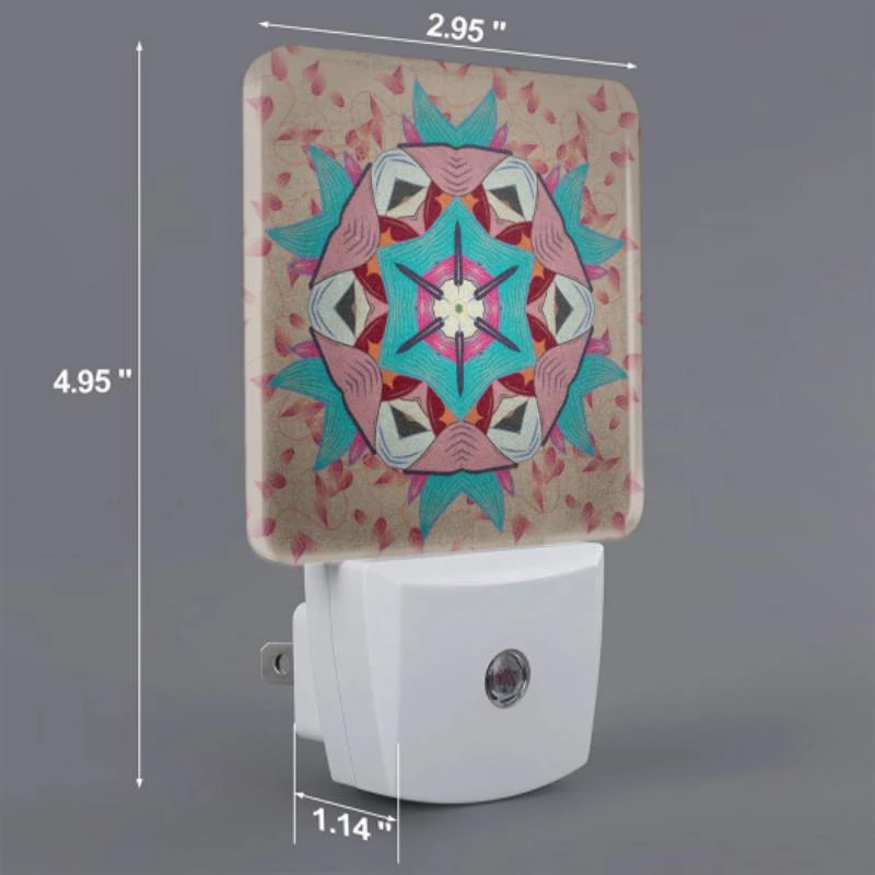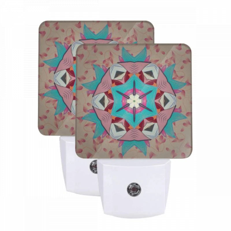 Night Light Set Of 2, A Colorful Flower Design With A Pink And Green Center.