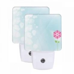 Night Light Set Of 2, A Single Pink Flower Stands Out Against A Blue Background. -Nuas Diy Shop 343aa35ea33746a253923bca5b52bf387ee6b0a1