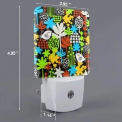 Night Light Set Of 2, A Colorful Pattern Of Birds And Flowers.