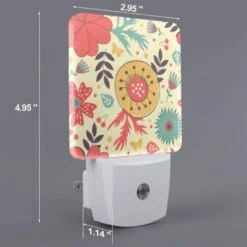 Night Light Set Of 2, A Colorful Floral Pattern With A Yellow Center.