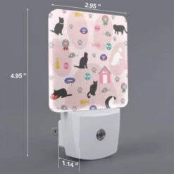 Night Light Set Of 2, A Cat Is Laying On A Pink Surface With A Cat House In The Background.