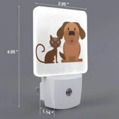 Night Light Set Of 2, A Dog And A Cat Are Sitting Next To Each Other.