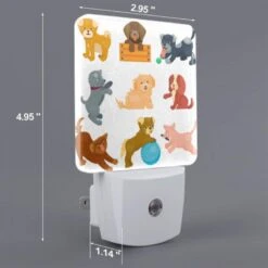 Night Light Set Of 2, A Collection Of Cartoon Dogs Playing With A Ball.