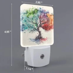 Night Light Set Of 2, A Colorful Tree With Leaves In Different Colors.