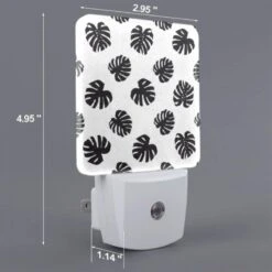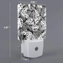 Night Light Set Of 2, A Pattern Of Leaves On A Black And White Background.