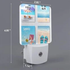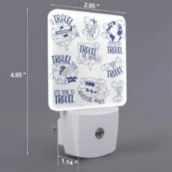 Night Light Set Of 2, A Collection Of Travel Documents And A Suitcase Are Placed On A Sandy Beach.