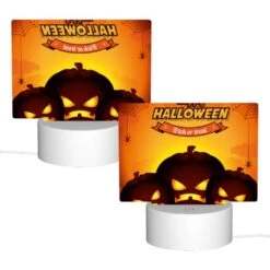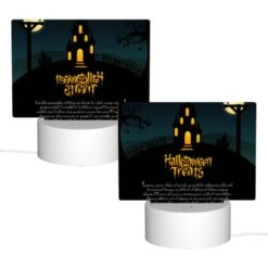 Rectangular Acrylic Night Light, A Halloween Treat Sign With A Spooky House And A Bat On Top.