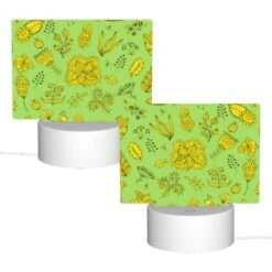 Rectangular Acrylic Night Light, A Green Background With Yellow Flowers And Leaves.