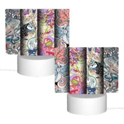 Rectangular Acrylic Night Light, Four Different Colored Designs Of Swirls And Patterns.