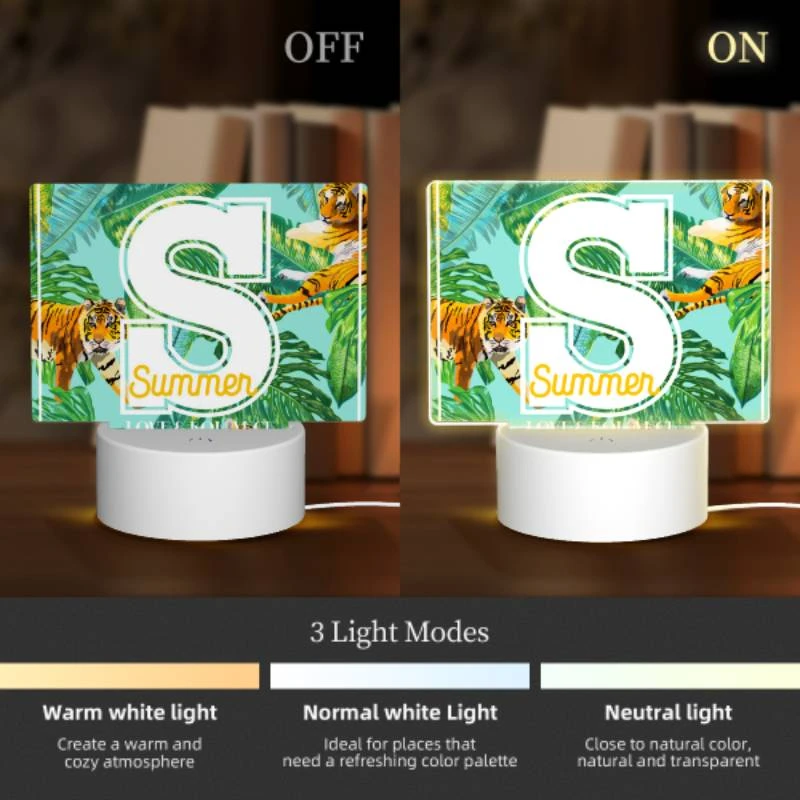 Be the first to review “Rectangular Acrylic Night Light, A Colorful Image Of A Tiger And A Palm Tree With The Letter S In The Middle.” Cancel reply