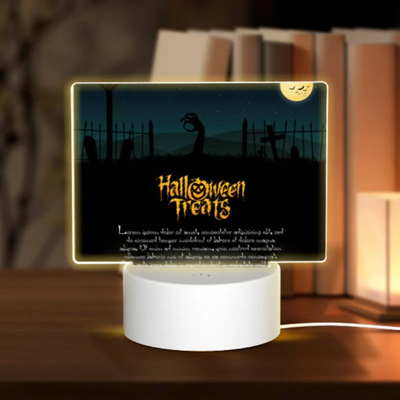 Be the first to review “Rectangular Acrylic Night Light, A Halloween Treat Poster With A Spooky Scene.” Cancel reply