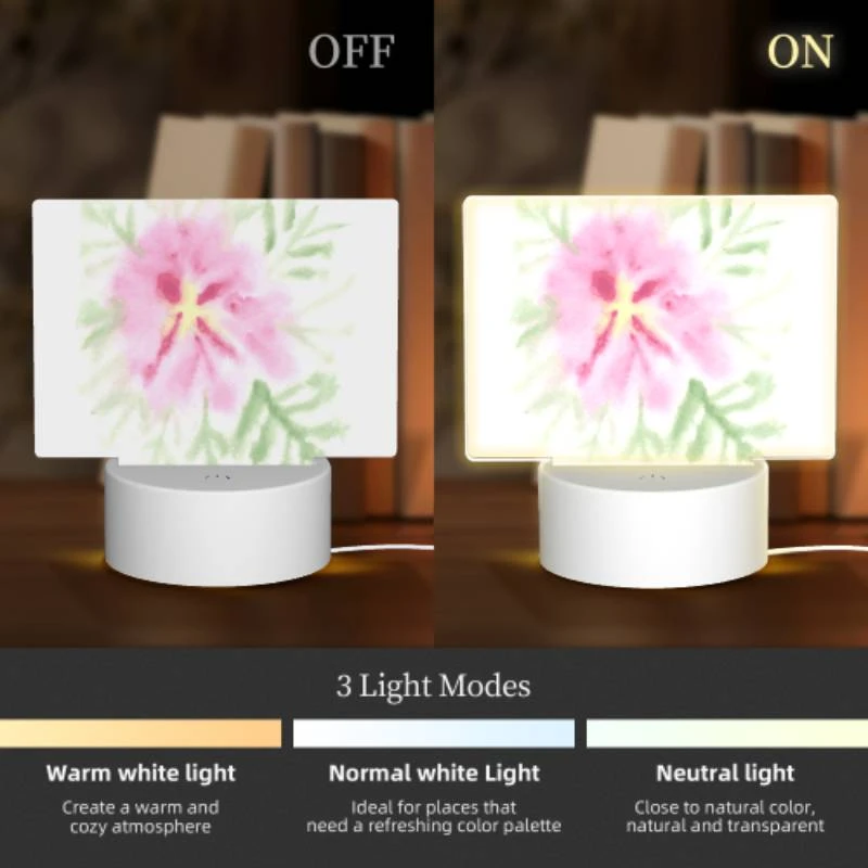 [Product Performance] The night light is composed of an acrylic light board and a plastic base. The night light has 3 light options (white light, warm light, warm white light). Touch to switch the light mode, which is soft and not dazzling, harmless to the eyes, and accompanies you into sweet dreams every night, creating a comfortable sleeping environment.