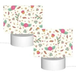 Rectangular Acrylic Night Light, A Pattern Of Flowers And Stars With A Pink Rose In The Center.