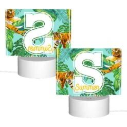 Rectangular Acrylic Night Light, A Colorful Image Of Leaves And A Sign That Says “welcome Summer.”