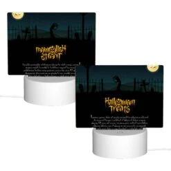 Rectangular Acrylic Night Light, A Halloween Themed Advertisement With A Pumpkin And Bats.