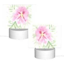 Rectangular Acrylic Night Light, A Pattern Of Flowers And Stars With A Pink Rose In The Center.