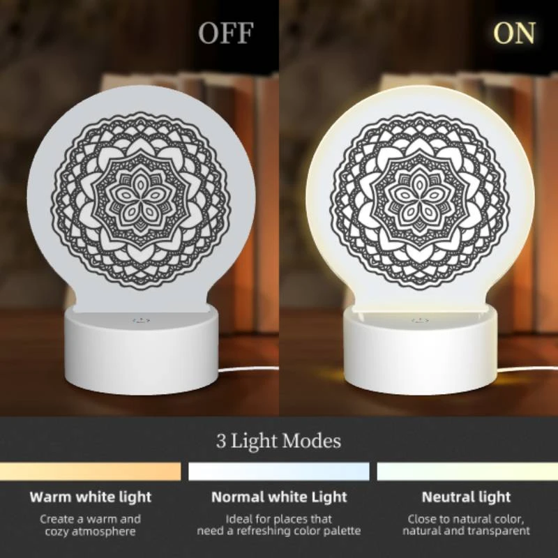 [Product Performance] The night light is composed of an acrylic light board and a plastic base. The night light has 3 light options (white light, warm light, warm white light). Touch to switch the light mode, which is soft and not dazzling, harmless to the eyes, and accompanies you into sweet dreams every night, creating a comfortable sleeping environment.