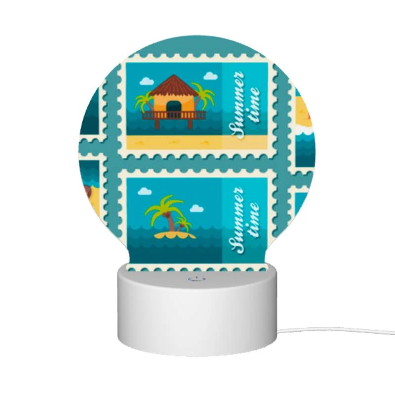 Be the first to review “Round Acrylic Night Light, A Collection Of Six Different Colored Postage Stamps Featuring Beach And Tropical Themes.” Cancel reply