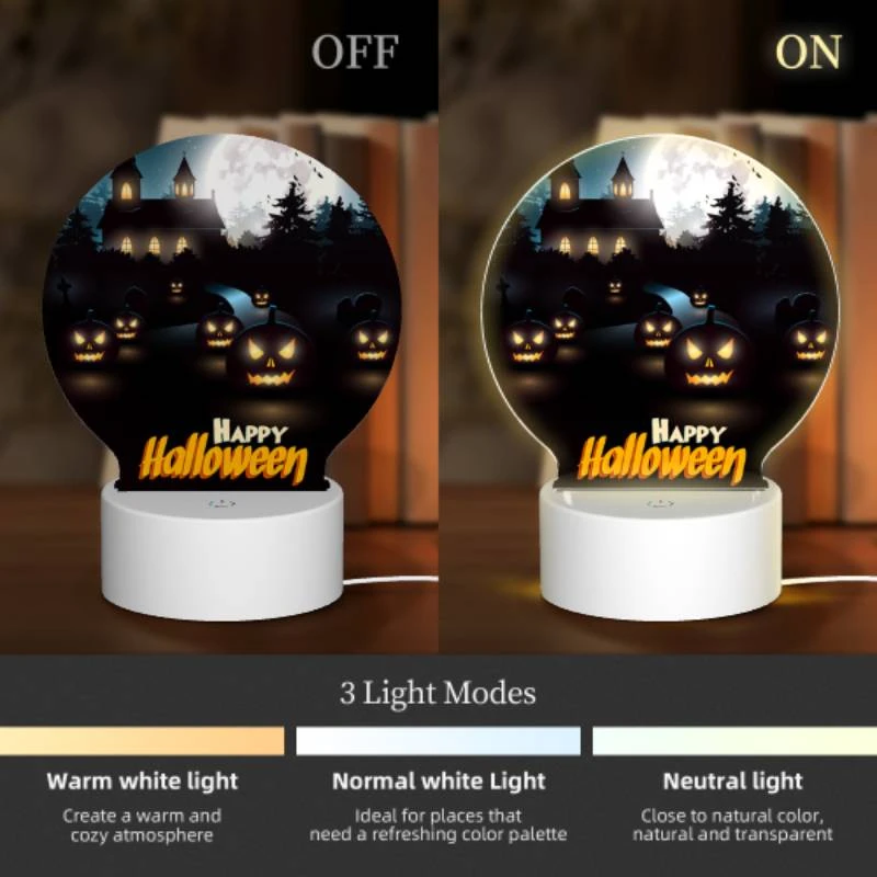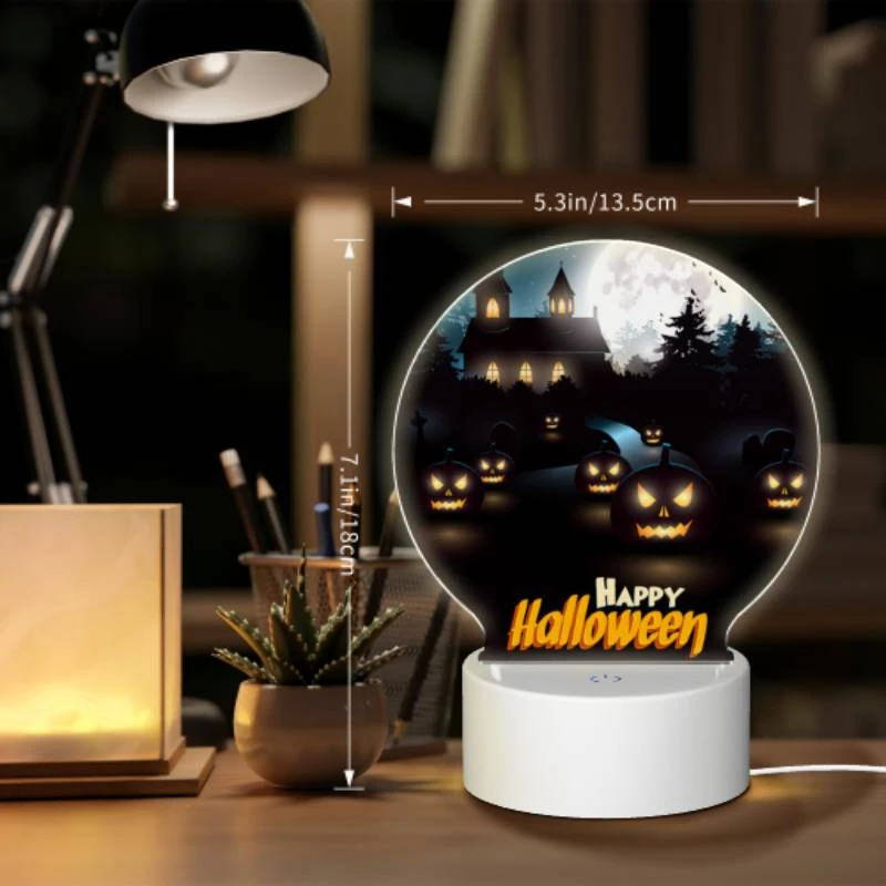 Be the first to review “Round Acrylic Night Light, A Halloween Scene With A House And Pumpkins.” Cancel reply