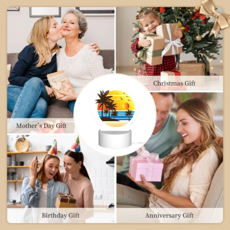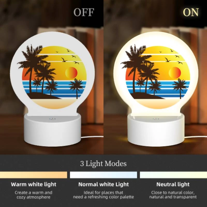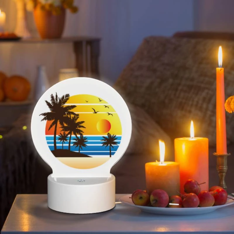 Be the first to review “Round Acrylic Night Light, A Sunset With Palm Trees And Birds.” Cancel reply
