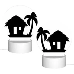 Round Acrylic Night Light, A Black And White Image Of A House With A Palm Tree In Front Of It.
