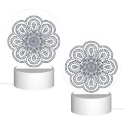 Round Acrylic Night Light, A Black And White Pattern Of Leaves.