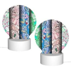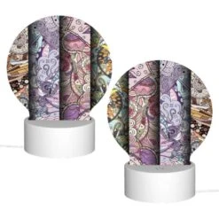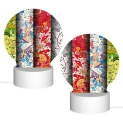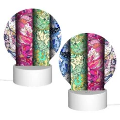 Round Acrylic Night Light, Four Different Colored Designs Of Swirls And Patterns.