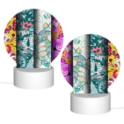 Round Acrylic Night Light, Four Colorful Designs Are Displayed On A Row.