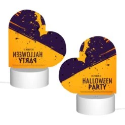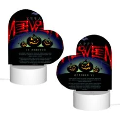 Love Acrylic Night Light, A Purple Background With A Happy Halloween Sign And A Bunch Of Eyes.