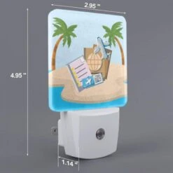 Night Light Set Of 2, A Collection Of Travel Documents And A Suitcase Are Placed On A Sandy Beach.