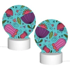 Round Acrylic Night Light, A Colorful Design Of Flowers And Leaves On A Blue Background.
