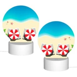 Round Acrylic Night Light, Three Different Colored Paintings Of Flowers.